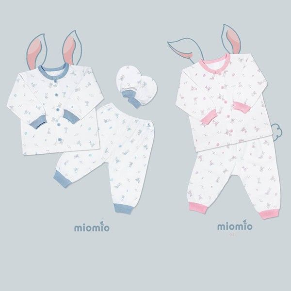 Thông tin chi tiết Bộ sơ sinh dài tay Miomio cài giữa họa tiết Thỏ mỏng mát