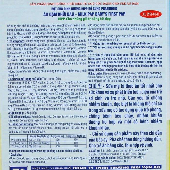 - Ngoài sữa bột, bột dinh dưỡng Hipp ăn dặm khởi đầu còn được bổ sung các khoáng chất cần thiết cho quá trình tăng trưởng của trẻ như sắt, canxi, viatmin D, A, C, E, I-ỐT...ở dạng nghiền nhỏ cho bé dễ hấp thu, bồi bổ cơ thể phát triển khỏe mạnh, cho bé nguồn dinh dưỡng an toàn và cân bằng: