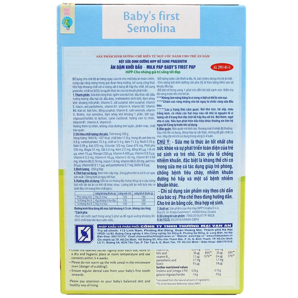 Bột ăn dặm HiPP 250g khởi đầu bổ sung cho chế độ ăn hàng ngày cho trẻ cho một bữa ăn hoàn chỉnh, cung cấp năng lượng cho trẻ trong giai đoạn tăng trưởng, bổ sung công thức hỗn hợp khoáng chất với vi lượng sắt ở dạng dễ hấp thụ nhất, bổ sung prebiotic (chất xơ GOS) là nguồn thức ăn cho lợi khuẩn phát triển.