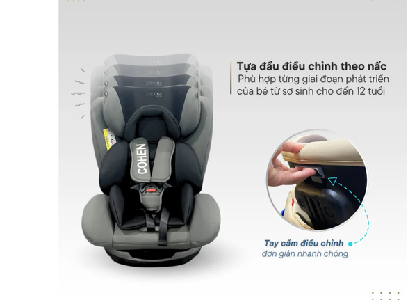 Ghế an toàn xe hơi Zaracos Cohen 7186 à sự lựa chọn kinh tế cho hành trình phát triển dài lâu của bé, phù hợp cho trẻ từ sơ sinh đến 12 tuổi (tối đa 36kg hoặc 150cm).