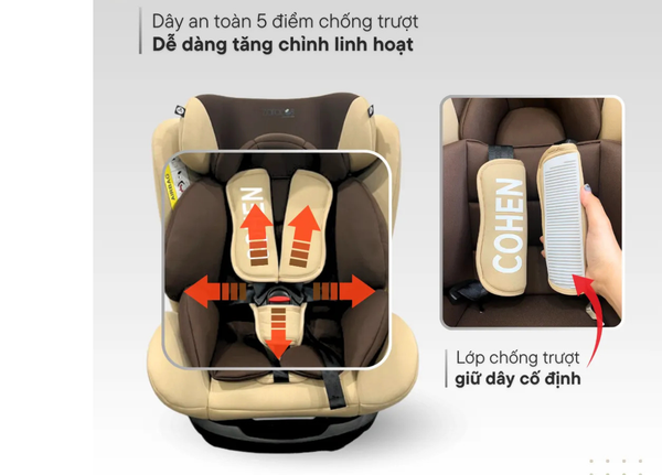 Ngoài ra, hệ thống dây đai có thể dễ dàng điều chỉnh linh hoạt, thích ứng theo từng giai đoạn phát triển của bé, vừa đảm bảo độ an toàn cao, vừa mang lại sự thoải mái tối đa trong mọi chuyến đi.