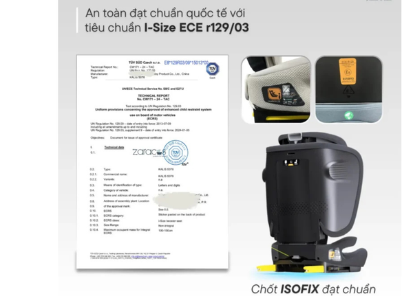 • Tiêu chuẩn an toàn: ECE R129/03 I-Size