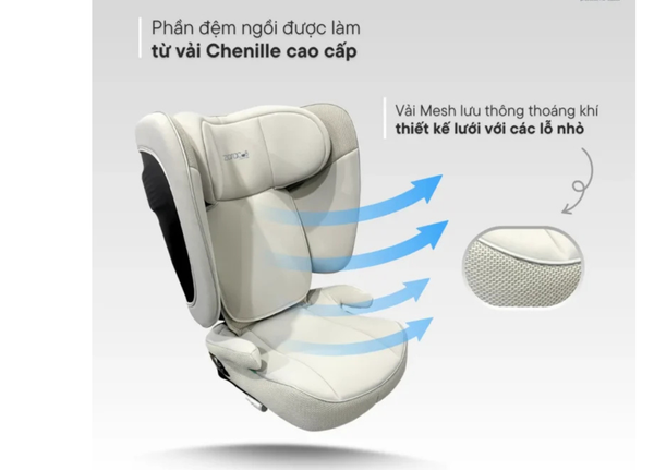 • Đạt chuẩn an toàn R129 I-Size Châu Âu, dùng cho trẻ từ 3–12 tuổi (100–150cm).