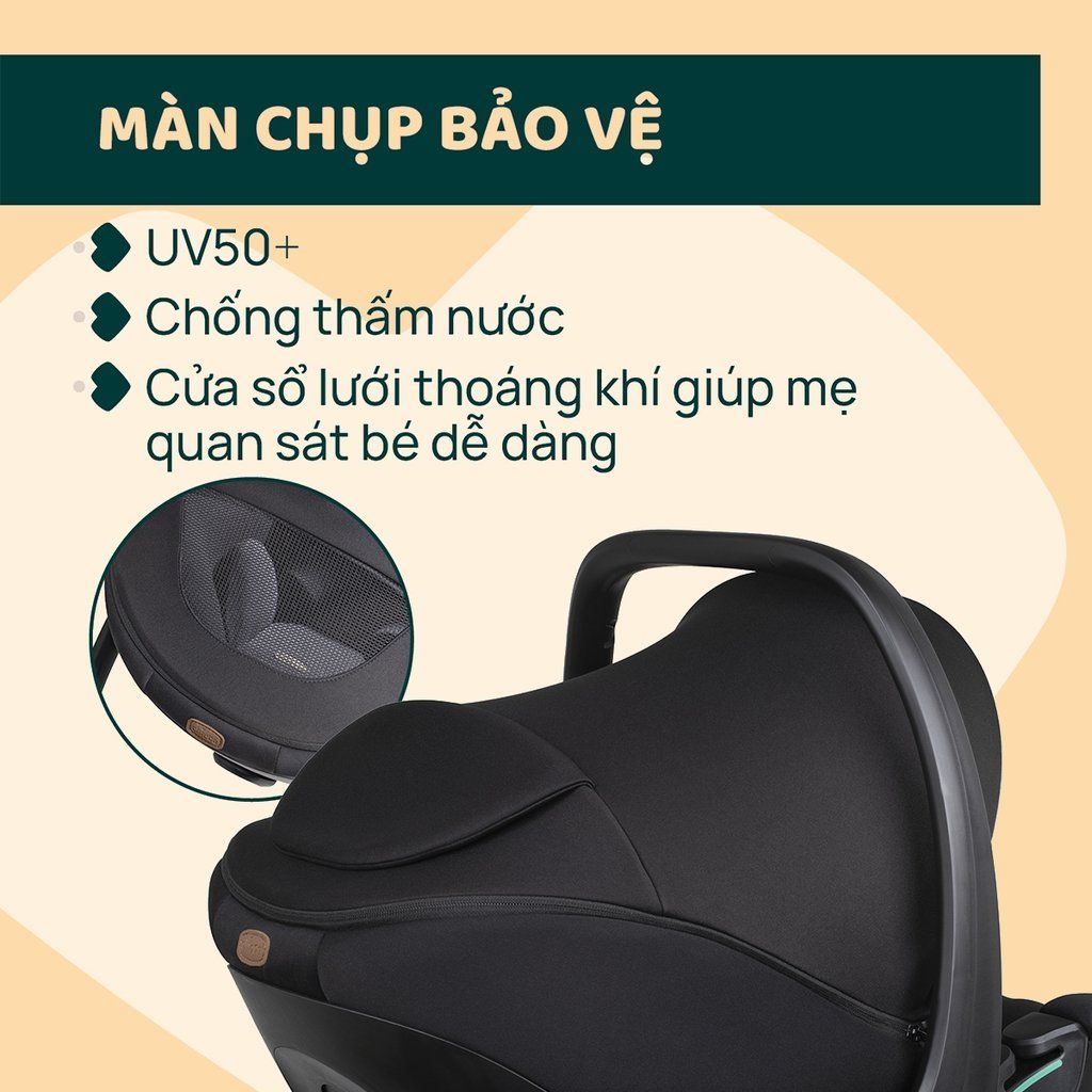 Có khả năng chống tia UV50+ và xử lý chống thấm nước. Cửa sổ lưới thoáng khí giúp mẹ quan sát bé dễ dàng.