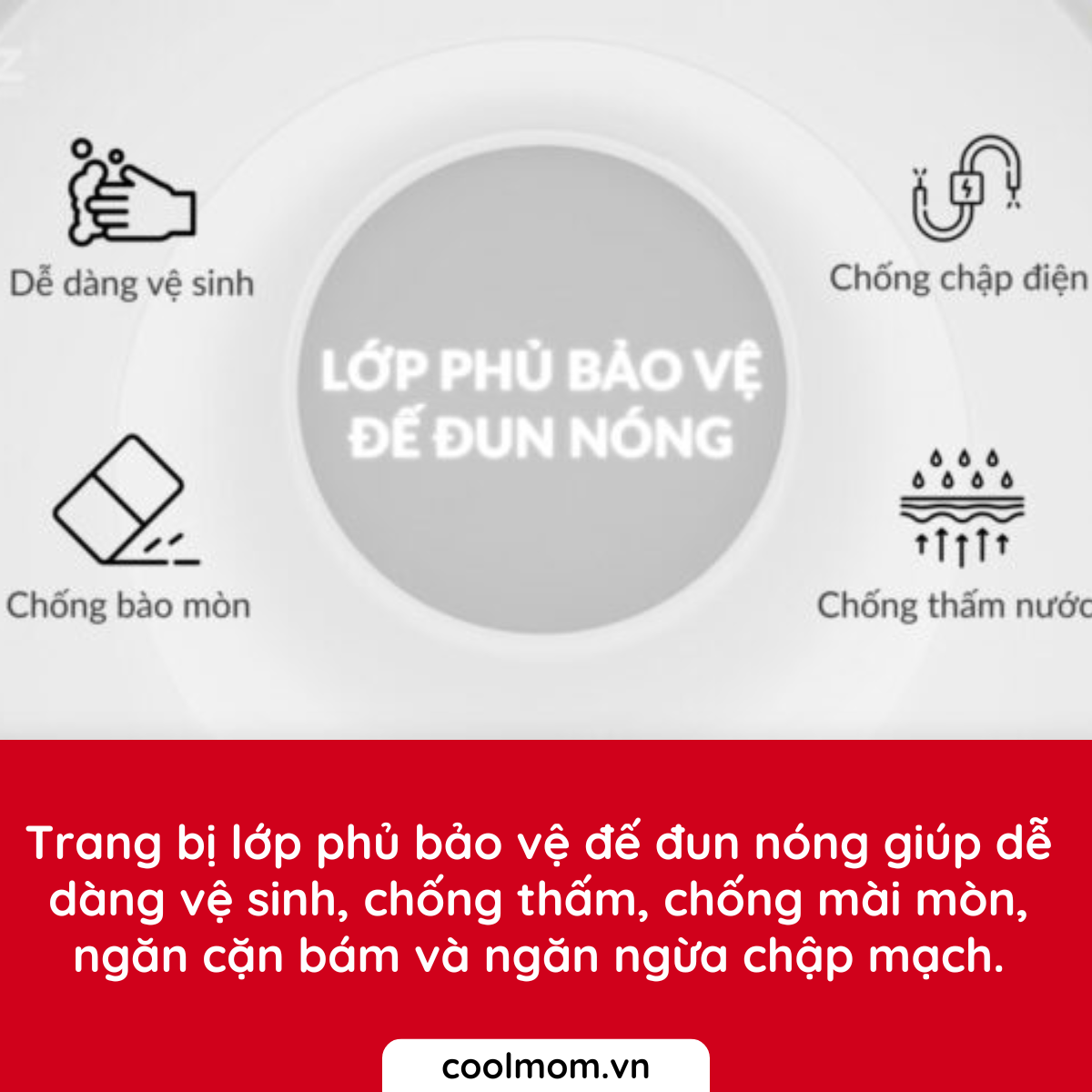 - ĐẶC BIỆT lớp phủ bảo vệ đế đun nóng