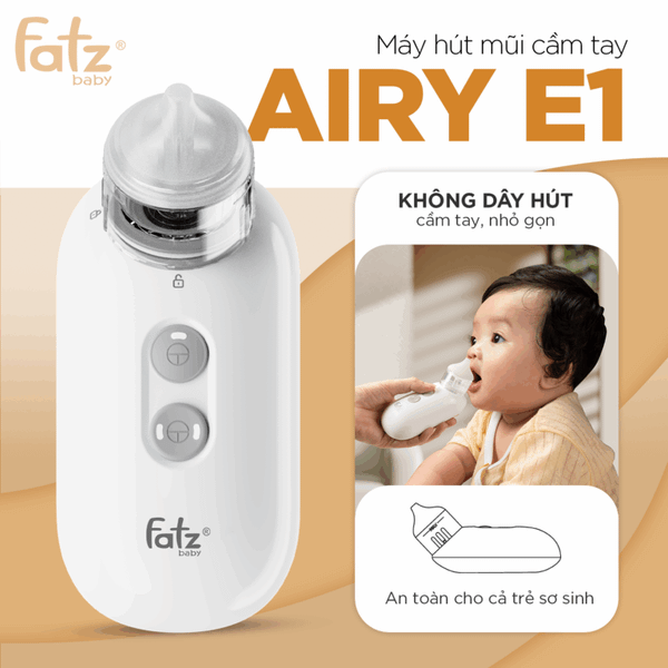 Máy hút mũi cầm tay Airy E1 là giải pháp chăm sóc hô hấp thiết thực, an toàn và tiện lợi dành cho trẻ nhỏ. Với thiết kế nhỏ gọn, dễ cầm và dễ thao tác, sản phẩm giúp cha mẹ nhẹ nhàng loại bỏ dịch nhầy trong khoang mũi, hỗ trợ bé thở dễ dàng hơn và nhanh chóng thoải mái khi bị cảm lạnh, nghẹt mũi hay viêm mũi. Đây là thiết bị y tế gia đình hiện đại, có thể sử dụng cho cả trẻ sơ sinh dưới sự hướng dẫn của người lớn.