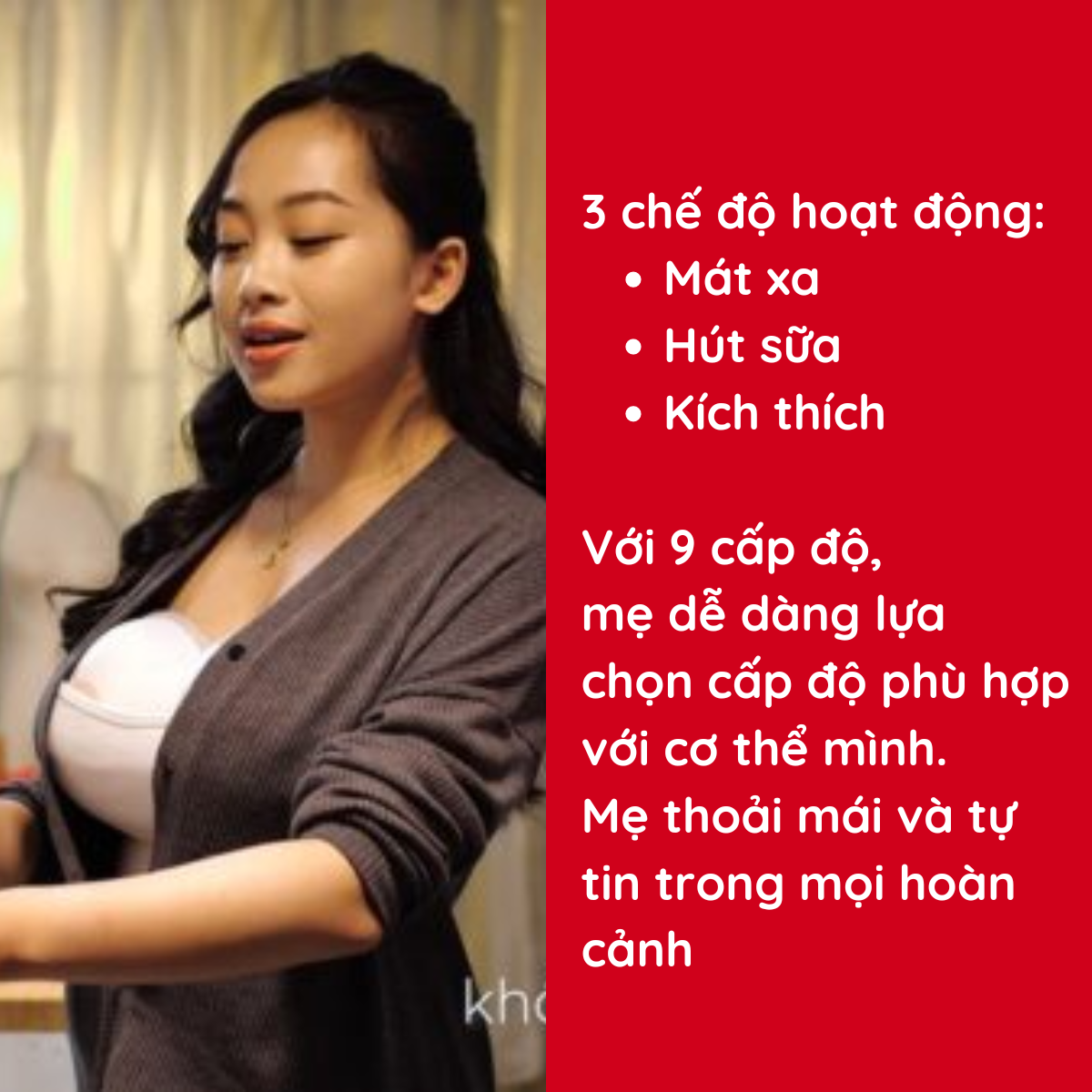 Có thể mặc vựa vặn trong áo ngực, không dây nối đem lại cảm giác thoải mái tối đa cho mẹ: rảnh tay, không bình sữa, không ống hút