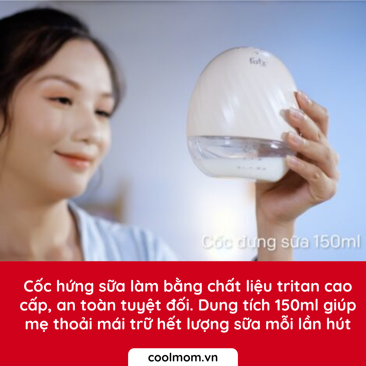 Đặc biệt: Cốc đựng sữa được làm từ vật liệu cao cấp tritan trong suốt thiết kế mỏng nhẹ gắn liền mô tơ dáng dẹt ovan đặt vừa trong áo quây hoặc áo ngực của mẹ. Dung tích pin cao và độ ồn thấp, Freemax 4 được đánh giá là máy êm ái nhất của dòng máy FREEMAX Fatzbaby