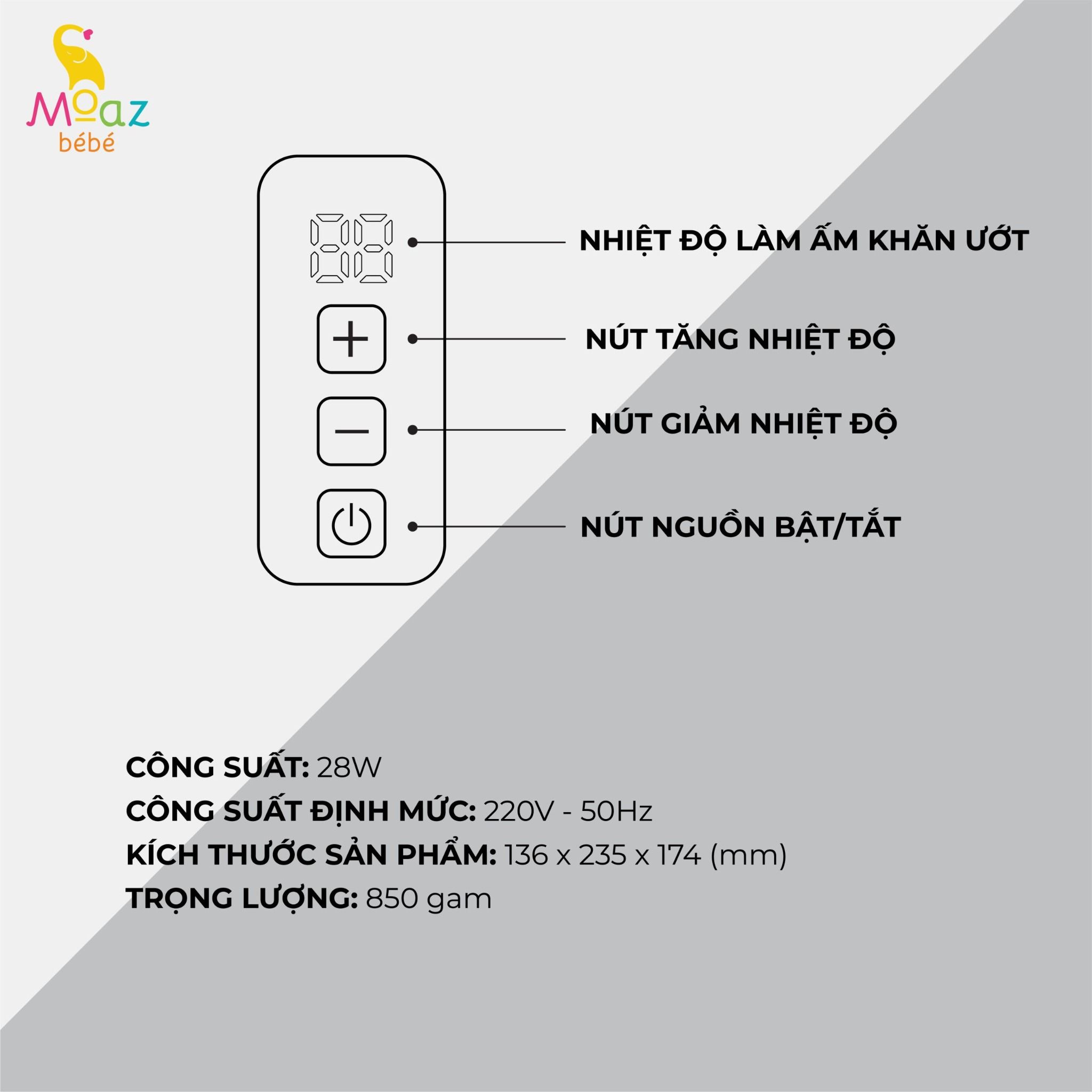 THÔNG SỐ KỸ THUẬT MÁY LÀM ẤM KHĂN ƯỚT MOAZ BÉBÉ MB-059: