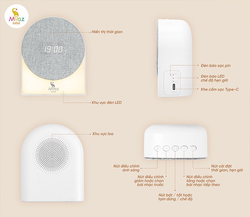 Cấu tạo máy tạo tiếng ồn trắng Moaz BéBé MB-106: