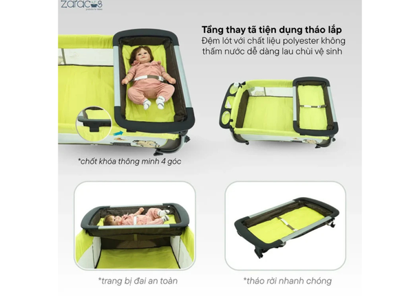 Zaracos Jelly 6046 không chỉ là một chiếc nôi đơn thuần, mà là giải pháp chăm sóc toàn diện cho bé yêu từ sơ sinh đến lúc tập đi.