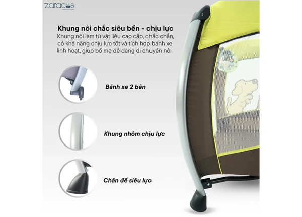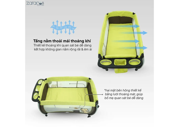 Đặc điểm nổi bật của nôi cũi cho bé Zaracos Jelly 6046 - Nôi cũi vải gấp gọn