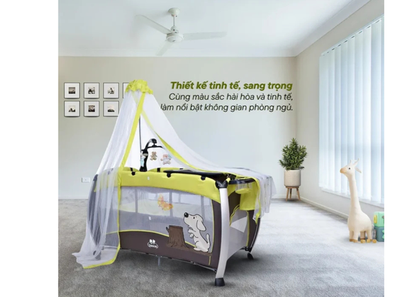 Trang bị mùng che thoáng khí có thể tháo lắp linh hoạt, giúp phủ kín toàn bộ nôi để bảo vệ bé yêu khỏi muỗi và côn trùng, đồng thời vẫn đảm bảo độ thoáng mát và an toàn cho giấc ngủ.