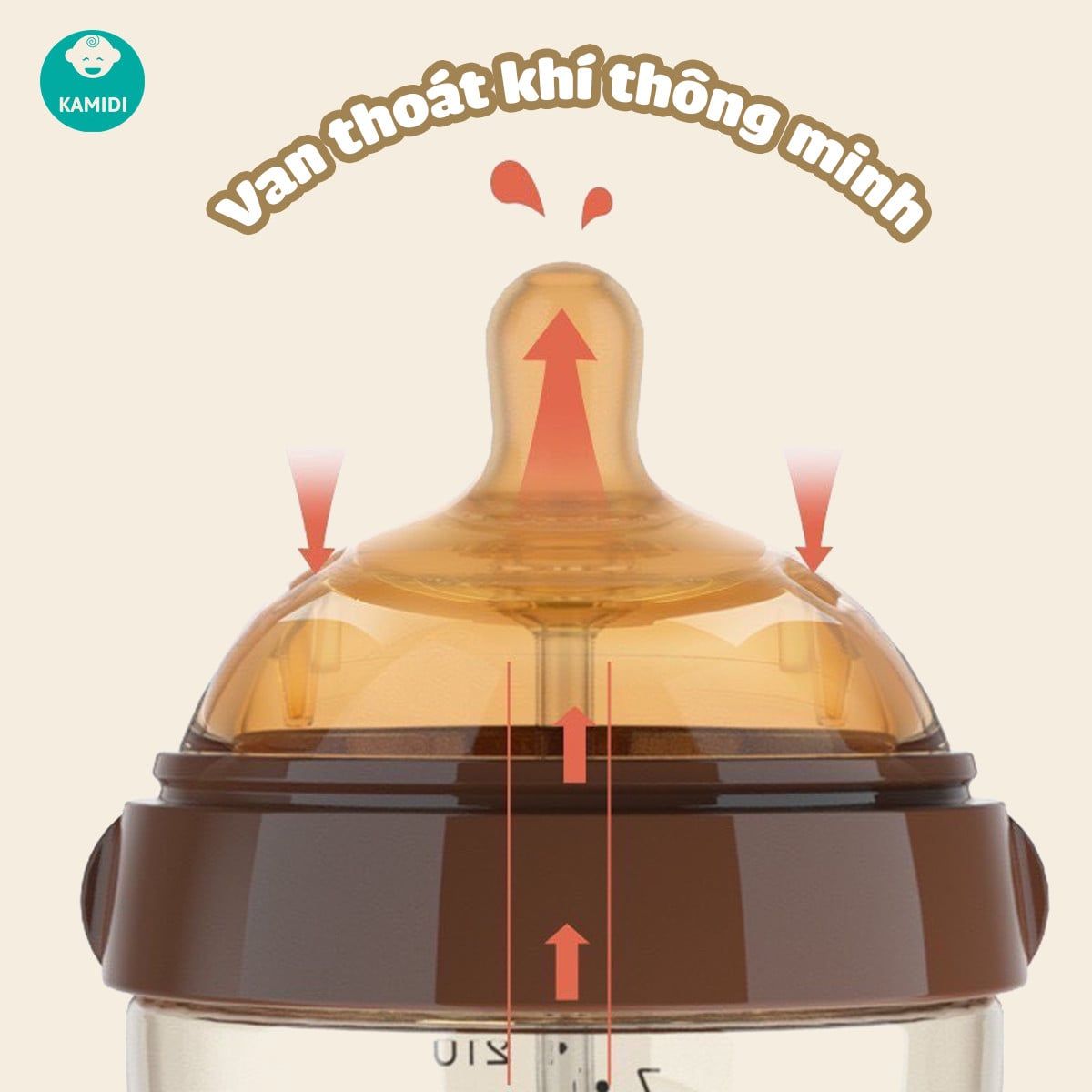 Van khí kép trên núm ti bình sữa giúp chống sặc hiệu quả giúp bé không bị nuốt không khí, ợ hơi, chướng bụng giảm tình trạng nôn trớ ở trẻ nhỏ, mẹ cũng đỡ phải vỗ ợ hơi cho con.