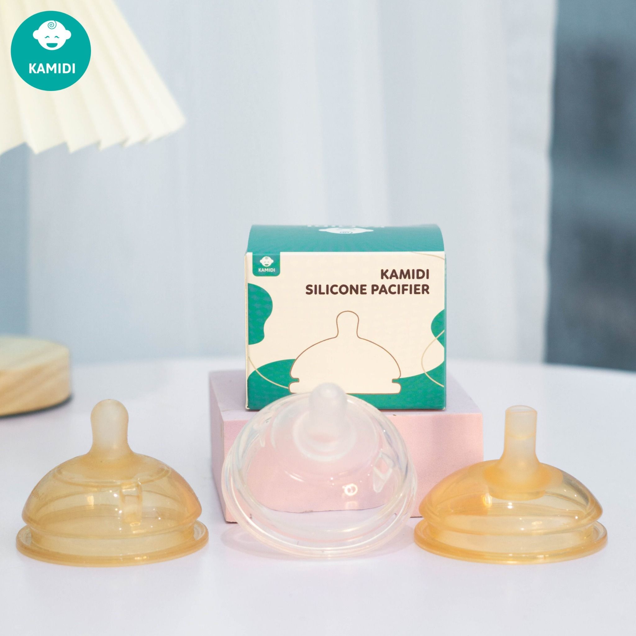 Núm ty bình sữa Kamidi là sản phẩm núm ti được làm từ silicone y tế cao cấp mềm mại phù hợp cho các bé từ 0 đến 24 tháng tuổi với thiết kế chống sặc và không chứa BPA.