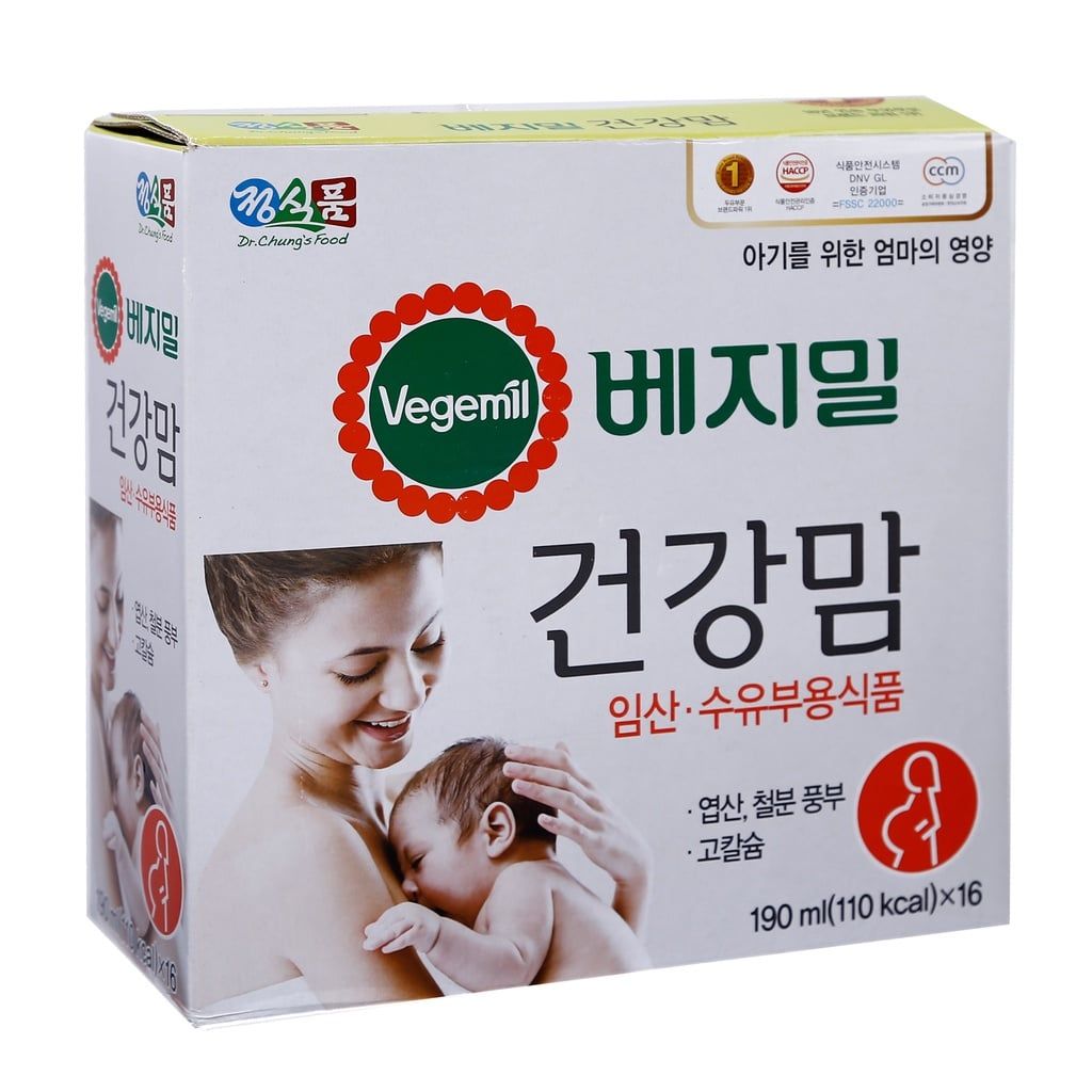 Sữa bầu Vegemil Hàn Quốc 190ml hay còn gọi là Sữa hạt Vegemil Healthy Mom Soymilk Hàn Quốc 190ml là loại sữa cho bà bầu được ưa chuộng nhất tại Hàn Quốc. Được chiết xuất 100% từ các loại hạt: hạt bí đỏ, đậu đen, hạt lanh, đậu nành và nước dừa. Cung cấp 7 loại vitamin thiết yếu (vitamin B1, B2, B6, C, D3, niacin, axit folic) và 3 loại khoáng chất (canxi, sắt, kẽm) cho mẹ bầu và đang cho con bú. Đặc biệt, sữa không chứa đường nên không gây tiểu đường thai kỳ, tất cả dinh dưỡng sẽ dồn hết vào phát triển cho con nên không mẹ ko sợ béo. Mẹ nào sợ uống sữa bầu ngấy thì sữa hạt Vegemil Hàn Quốc sẽ là sự thay thế tuyệt vời.
