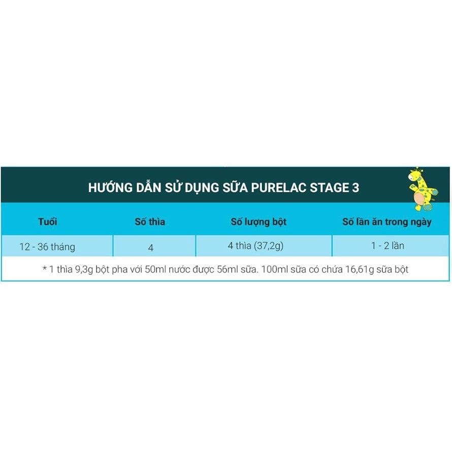 - Tỷ lệ đạm Whey : Casein trong PureLac số 3 là 6:4 (trẻ từ 12-36 tháng), giúp trẻ hấp thu và tiêu hóa tốt.