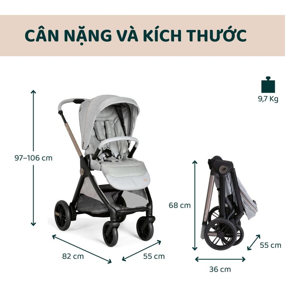 Thông tin chi tiết Xe đẩy cho bé Chicco gấp gọn tự động Bellagio (2 chiều - Màu ghi đá)