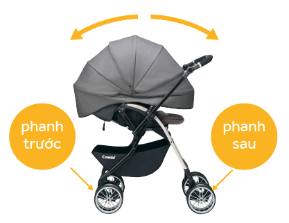 - Khi mẹ đẩy từ phía trước, muốn dừng xe chỉ cần khóa phanh trước.