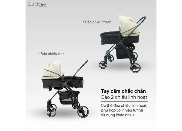 Khả năng đảo chiều linh hoạt hai hướng trước và sau. Bố mẹ có thể dễ dàng điều chỉnh nôi nằm hoặc ghế ngồi theo hướng đối diện hoặc cùng chiều di chuyển, giúp thuận tiện quan sát, tương tác và chăm sóc bé một cách an toàn và dễ dàng hơn.