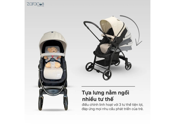 Xe đẩy kiểm ghế ngồi ô tô Zaracos Coron 4606 được thiết kế với tựa lưng điều chỉnh linh hoạt 3 tư thế, phù hợp với từng giai đoạn phát triển và nhu cầu sử dụng của bé.