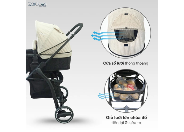 Thiết kế còn tích hợp cửa sổ lưới phía trên mái che, giúp cha mẹ dễ dàng quan sát và tương tác với bé mọi lúc, đảm bảo sự kết nối và an tâm tuyệt đối khi di chuyển.