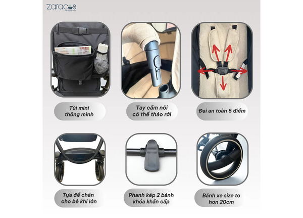 Ưu điểm của Xe đẩy cho bé - Kèm Ghế ngồi ô tô Zaracos Coron 4606: