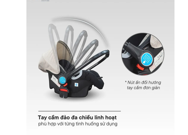Sở hữu tay cầm thiết kế chắc chắn, an toàn, giúp bố mẹ yên tâm khi di chuyển bé. Với trọng lượng nhẹ chỉ 3,2kg. Đặc biệt, tay cầm có thể đảo chiều linh hoạt, phù hợp với nhiều tư thế sử dụng khác nhau mang đến sự tiện lợi tối đa cho bố mẹ trong mọi tình huống.